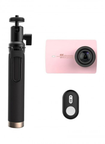 كاميرا الحركة والرياضة بدقة 4K تعمل بتقنية الواي فاي 12 ميجابكسل بلون وردي مع عصا سيلفي وجهاز تحكم يعمل بالبلوتوث
