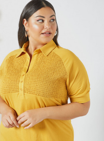 فستان بولو مكشكش بمقاس كبير أصفر داكن