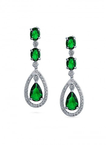حلق أذن متدلي مطلي بالفضة ومرصع بالزركونيا المكعبة