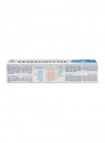 Sensodyne Fluoride Toothpaste is suitable for people suffering from teeth sensitivity to fluoride. Contains strontium chloride to narrow dentinal tubules and protect necks of your teeth. Use to reduce sensitivity to warm, cold, touch and osmotic stimuli. It also efficiently cleans teeth enamel and leaves a long-lasting fresh breath.