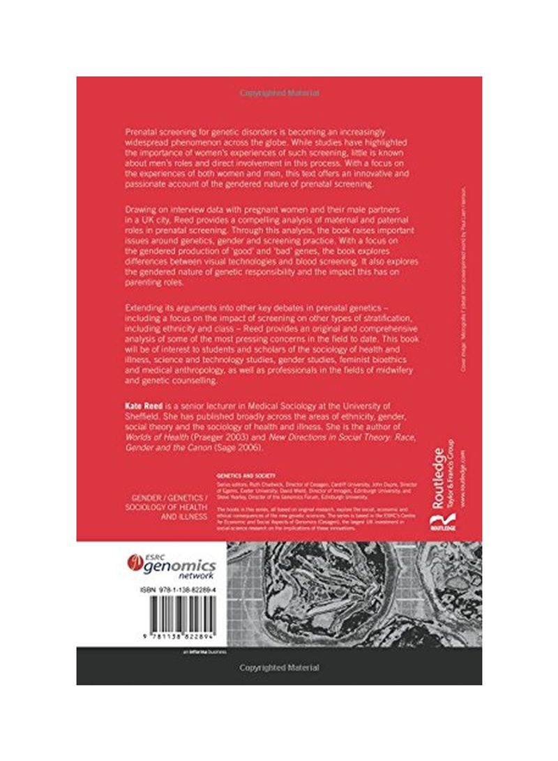 Prenatal screening for genetic disorders is becoming an increasingly widespread phenomenon across the globe. While studies have highlighted the importance of women?s experiences of such screening, little is known about men?s roles and direct involvement in this process. With a focus on the experiences of both women and men, this text offers an innovative and passionate account of the gendered nature of prenatal screening. Drawing on interview data with pregnant women and their male partners in a UK city, Reed provides a compelling analysis of maternal and paternal roles in prenatal screening. Through this analysis, the book raises important issues around genetics, gender and screening practice. With a focus on the gendered production of ?good? and ?bad? genes, the book explores differences between visual technologies and blood screening. It also explores the gendered nature of genetic responsibility and the impact this has on parenting roles. Extending its arguments into other key debates in prenatal genetics - including a focus on the impact of screening on other types of stratification, including ethnicity and class - Reed provides an original and comprehensive analysis of some of the most pressing concerns in the field to date. This book will be of interest to students and scholars of the sociology of health and illness, science and technology studies, gender studies, feminist bioethics and medical anthropology, as well as professionals in the fields of midwifery and genetic counselling.