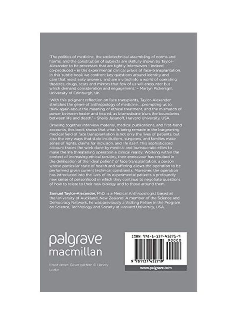 The politics of medicine, the sociotechnical assembling of norms and harms, and the constitution of subjects are skilfully shown by Taylor-Alexander to be processes that are tightly interwoven - indeed, co-produced - in the experimental clinical praxis of face-transplantation. In this subtle book we confront key questions around identity and care that resist easy answers, and are invited into a world of operating theatres, drugs, scars and mirrors that few of us will encounter but which demand consideration and engagement. - Martyn Pickersgill, University of Edinburgh, UK "With this poignant reflection on face transplants, Taylor-Alexander stretches the genre of anthropology of medicine [ ] prompting us to think again about the meaning of ethical treatment, and the mismatch of power between healer and healed, as biomedicine blurs the boundaries between life and death." - Sheila Jasanoff, Harvard Kennedy School, USA