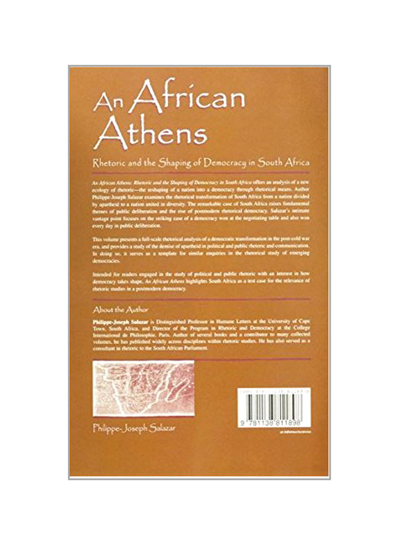 An African Athens offers an analysis of a new ecology of rhetoric--the reshaping of a nation into a democracy through rhetorical means. Author Philippe-Joseph Salazar provides a general view of issues as they have taken shape in the apartheid and post-apartheid South African experience, presenting the country as a remarkable stage for playing out the great themes of public deliberation and the rise of postmodern rhetorical democracy. Salazar's intimate vantage point focuses on the striking case of a democracy won at the negotiating table and also won every day in public deliberation. This volume presents a full-scale rhetorical analysis of a democratic transformation in post-Cold War era, and provides a study of the demise of apartheid and post-apartheid from the standpoint of political and public rhetoric and communication. In doing so, it serves as a template for similar enquiries in the rhetorical study of emerging democracies. Intended for readers engaged in the study of political and public rhetoric with an interest in how democracy takes shape, An African Athens highlights South Africa as a test case for global democracy, for rhetoric, and for the relevance of rhetoric studies in a postmodern democracy.