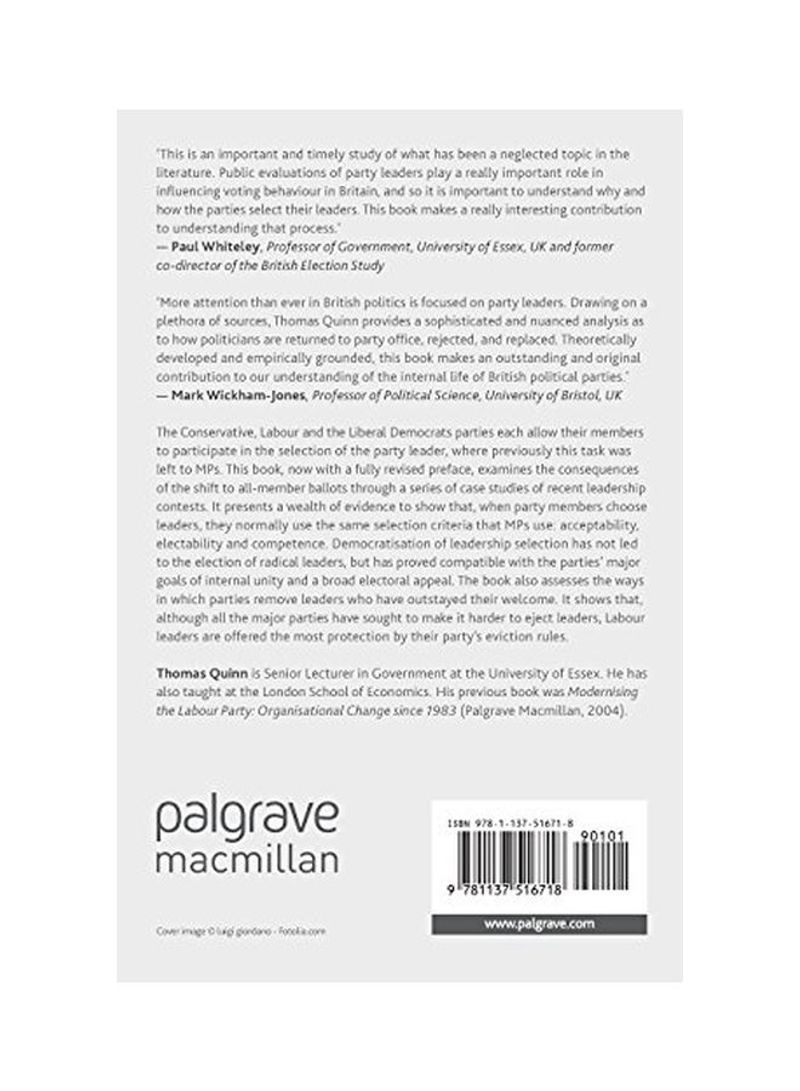 More attention than ever in British politics is focused on party leaders. Drawing on a plethora of sources, Thomas Quinn provides a sophisticated and nuanced analysis as to how politicians are returned to party office, rejected, and replaced. Theoretically developed and empirically grounded, this book makes an outstanding and original contribution to our understanding of the internal life of British political parties.' - Mark Wickham-Jones, Professor of Political Science, University of Bristol, UK