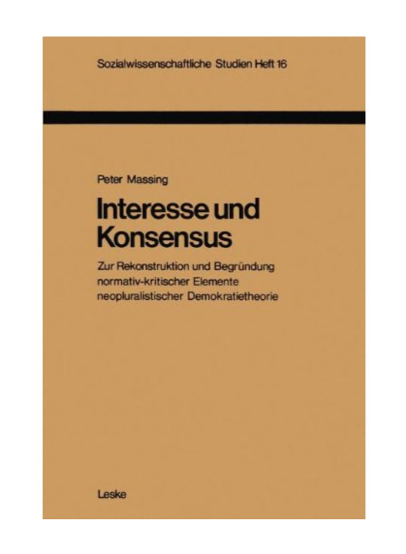 Winfried Steffani recently emphasized once again that, despite all the criticisms, a convincing alternative to pluralist democracy has not yet been developed and pluralistic democracy is and remains a work program in theory and practice. * The focus of this study is on the normative dimension of democracy neoplurial state theory Ernst Fraenkel. By attempting to reconstruct their central categories of interest and consensus in terms of pluralism, but also from an interdisciplinary perspective, the normative premises of pluralistic theory of democracy are to be problematized, proposals for their re-foundation discussed and stimulated further fundamental reflection. The dissertation was accepted in 1977 by the Department of Philosophy and Social Sciences of the University of Hamburg. For many suggestions and intensive support, I owe my doctoral supervisor Professor dr. Winfried Steffani special thanks, as well as the second expert of the Arb. Udo Bermbach. I also thank all the teachers and colleagues who have helped me with the creation of this work through hints, criticism and encouragement. My thanks also go to the University of Hamburg, without whose financial support the work in the present form could not have appeared .: Iamburg, May 1978 Peter Massing * Cf. Winfried Steffani, Pluralism, Conceptual Positions-Critique, in: Politische Bildung, H. I, 1977, p. 27. 9 1.