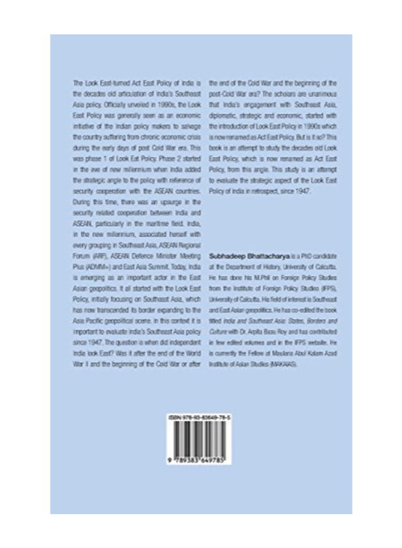 The Look East-turned Act East Policy of India is the decades old articulation of India's Southeast Asia policy. Officially unveiled in 1990s, the Look East Policy was generally seen as an economic initiative of the Indian policy makers to salvage the country suffering from chronic economic crisis during the early days of post Cold War era. This was phase 1 of Look Eat Policy. Phase 2 started in the eve of new millennium when India added the strategic angle to the policy with reference of security cooperation with the ASEAN countries. During this time, there was an upsurge in the security related cooperation between India and ASEAN, particularly in the maritime field. India, in the new millennium, associated herself with every grouping in Southeast Asia, ASEAN Regional Forum (ARF), ASEAN Defence Minister Meeting Plus (ADMM]) and East Asia Summit. Today, India is emerging as an important actor in the East Asian geopolitics. It all started with the Look East Policy, initially focusing on Southeast Asia, which has now transcended its border expanding to the Asia Pacific geopolitical scene. In this context it is important to evaluate India's Southeast Asia policy since 1947. The question is when did independent India look East? Was it after the end of the World War II and the beginning of the Cold War or after the end of the Cold War and the beginning of the post-Cold War era? The scholars are unanimous that India's engagement with Southeast Asia, diplomatic, strategic and economic, started with the introduction of Look East Policy in 1990s which is now renamed as Act East Policy. But is it so? This book is an attempt to study the decades old Look East Policy, which is now renamed as Act East Policy, from this angle. This study is an attempt to evaluate the strategic aspect of the Look East Policy of India in retrospect, since 1947.