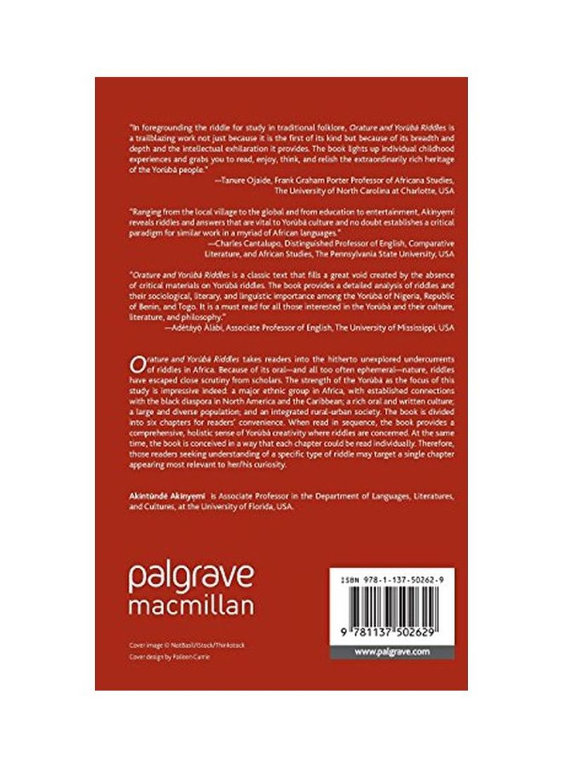 Orature and Yoruba Riddles takes readers into the hitherto unexplored undercurrents of riddles in Africa. Because of its oral - and all too offten epehermal - nature, ridles have escaped close scrutiny from scholars. The strength of the Yoruba as the focus of this study is impressive indeed: a major ethnic group in Africa, with established connections with the black diaspora in North America and the Caribbean; a rich oral and written culture; a large diverse population; and an integrated rural-urban society. The book is divided into six chapters for readers' convenience. When read in sequence, the book provides a comprehensive, holistic sense of Yoruba creativity where riddles are concerned. At the same time, the book is conceived in a way that each chaper could be read individually. Therefore, those readers seeking understanding of a specific type of riddle may target a single chapter most relevant to her/his curiosity.