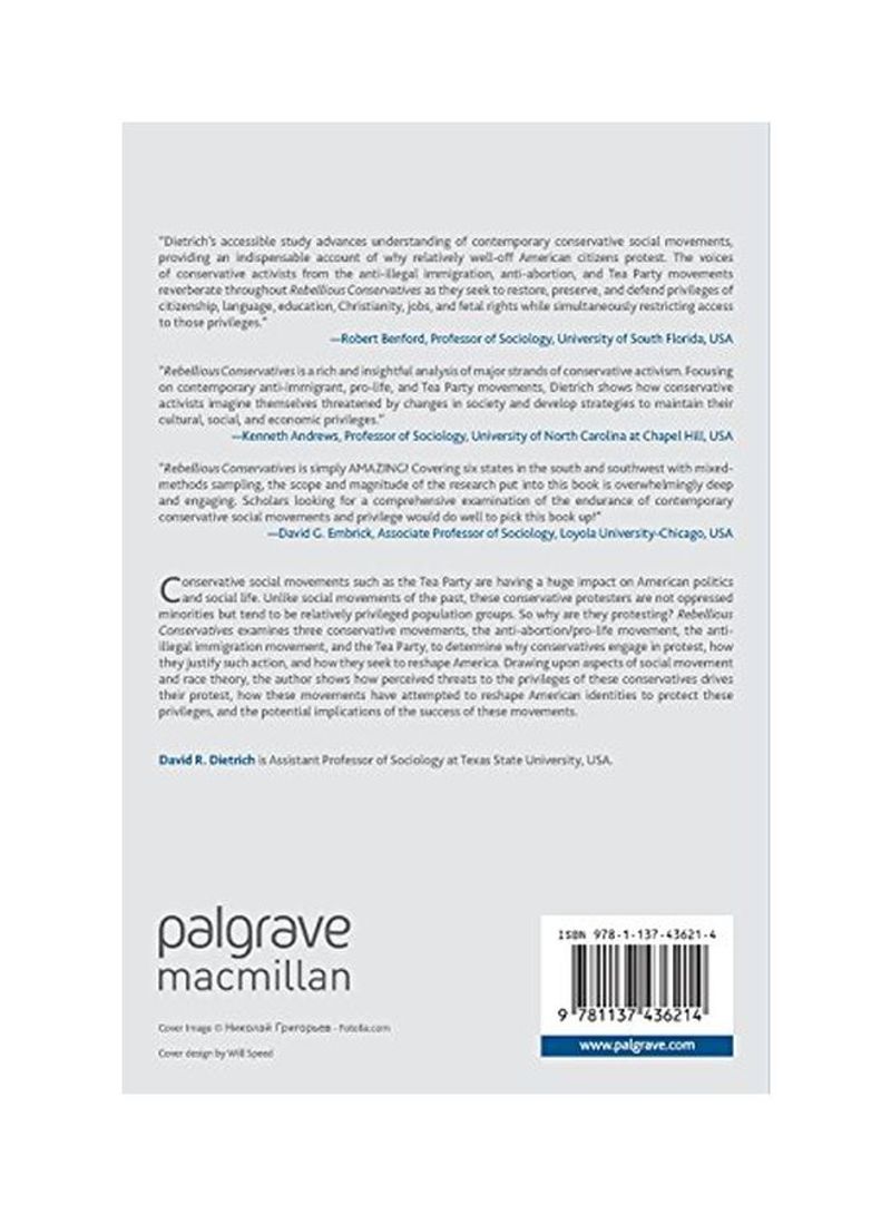 Dietrich's accessible study advances understanding of contemporary conservative social movements, providing an indispensable account of why relatively well-off American citizens protest. The voices of conservative activists from the anti-illegal immigration, anti-abortion, and Tea Party movements reverberate throughout Rebellious Conservatives as they seek to restore, preserve, and defend privileges of citizenship, language, education, Christianity, jobs, and fetal rights while simultaneously restricting access to those privileges. - Robert Benford, Professor of Sociology, University of South Florida, USA."Rebellious Conservatives is a rich and insightful analysis of major strands of conservative activism. Focusing on contemporary anti-immigrant, pro-life, and Tea Party movements, Dietrich shows how conservative activists imagine themselves threatened by changes in society and develop srategies to maintain their cultural, social, and economic privileges."- Kenneth Andrews, Professor of Sociology, University of North Carolina at Chapel Hill, USA."Rebellious Conservatives is simply AMAZING! Covering six states in the south and southwest with mixed-methods sampling, the scope and magnitude of the research put into this book is overwhelmingly deep and engaging. Scholars looking for a comprehensive examination of the endurance of contemporary conservative social movements and privilege would do well to pick this book up!" - David G. Embrick, Associate Professor of Sociology, Loyola University-Chicago, USA