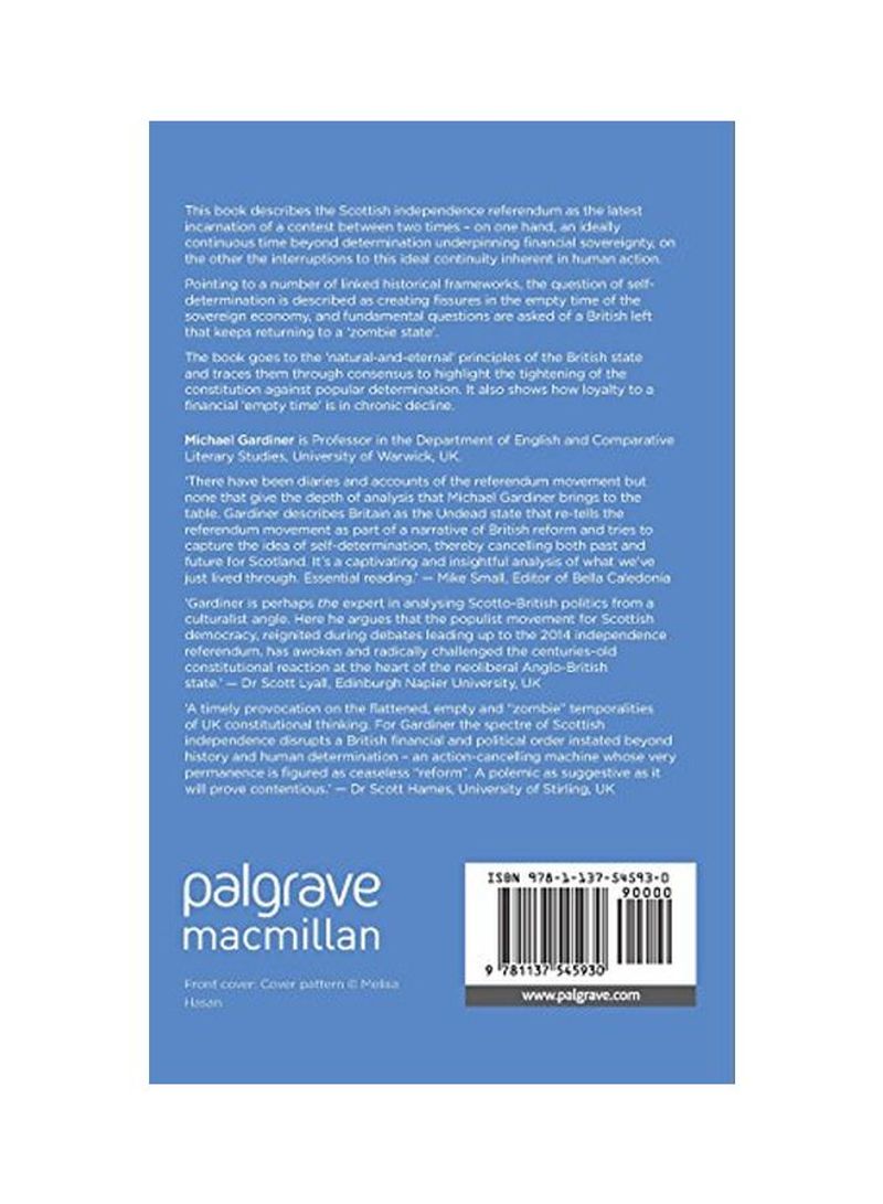 There have been diaries and accounts of the referendum movement but none that give the depth of analysis that Michael Gardiner brings to the table. Britain as the Undead state, re-telling the movement as part of a narrative of British reform - and trying to capture the idea of self-determination, thereby cancelling both past and future for Scotland. It's a captivating insightful analysis of what we've just lived through. Essential reading. Mike Small, editor of Bella Caledonia