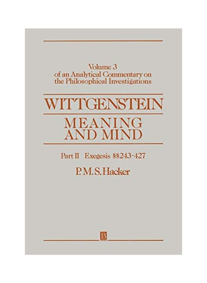 Wittgenstein: Meaning and Mind, Volume 3 of an Analytical Commentary on the Philosophical Investigations, Part II: Exegesis 243-247 Paperback