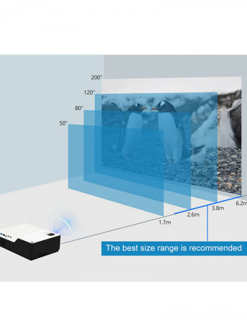 Native 1080p projector has true color 16777k with a resolution of 1920*1080 and a maximum ratio of 5000:1. It is completely capable of responding to your home theatre, ps5 or xbox games, and even large conference room. Let each audience clearly feel the visual feast. 1080p projector has 4500 lumens and the light source system uses 180 lamp beads to make it brighter and more beautiful. The 720p projectors are generally include only 2000~3000 lumens (the lamp beads are only 60~120). Whether you are in an indoor theatre or outdoors, you can easily use it and have fun with your family. A native1080P projector - The user is most concerned about durability. How long can it last? Our exclusive development of the multi-speed dual-fan cooling system can better control the heat dissipation and noise relationship of the projector to achieve balance. Two high-speed fans, air inlet and outlet are respectively used at speeds of 2600RPM and 2300RPM. Fan noise when you turn it on, it is about 50dB. Pls don't worry because it needs to expel heat from the projector more quickly. And we strongly recommend that when playing a movie, you need to reserve a certain space around the projector to dissipate heat. Specifications: Brand: Wownect Model: M18 Projection technology: 6 inch LCD Physical resolution: 1920x1080P LED lamp life: 30,000 hours Brightness: 5,500. Peak Value Scope: 4,000 - 6,500 Lumens Projection distance: 1.7-9.2m Projection ratio: 1.35 Projection Distance: 2 - 5 m Image Size: 50 - 300 inch Best projection distance: 3.2m/100inch Interface: USB*2 (One USB only supports charging), HDMI, VGA, AV output: 3.5 mm Earphone Power input: AC 110~240V, Power: 150W Speaker: 5W Package Includes: 1x Wownect M18 Standard Home Theatre Projector 1x Power Adapter 1x HDMI Cable 1x User Manual 1x Remote control