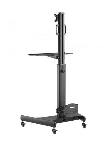 Equipped with built-in CPU holder, this mobile workstation is very helpful with its retractile keyboard tray, locking caster, gripping handle and height adjustable monitor mount. Itâs easy to roll it to where you want while working! Built-in locks on each wheel allow the workstation to seamlessly transition from mobile to stationary. SPECIFICATIONS Product Category: On-Floor Workstation Rank: Standard Material: Steel,Aluminum Color: Black Dimensions: 875x630x1350~1670mm (34.4"x24.8"x53.1"~65.7") Fit Screen Size: 13"-32" VESA Compatible: 75x75,100x100 Monitor Weight Capacity (per screen): 8kg (17.6lbs) Tilt Range: +30°~-30° Screen Rotation: +180°~-180° Keyboard Tray Weight Capacity: 2kg (4.4lbs) Height Range: 320mm (12.6") Height Adjustment: Manual Quick Release VESA Plate: Yes Installation: Freestanding Caster: Yes Accessory Kit Package: Normal/Ziplock Polybag,Compartment Polybag
