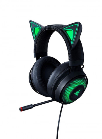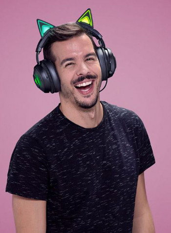 THE MEOW FACTOR- Create the purrfect gaming look with your own killer kitty style. Express your own unique personality and passion in the most colorful way imaginable with the Razer Kraken Kitty Editionâa USB gaming headset with highly customizable lighting thatâs every shade of awesome. KITTY EARS AND EARCUPS POWERED BY RAZER CHROMA- With 16.8 million colors and a suite of lighting effects, the style possibilities are endless with our signature RGB lighting. Able to light up independently from one another, the gaming headsetâs earcups and kitty ears can be customized to your heartâs content for a range of looks to match every occasion. STREAM REACTIVE LIGHTING- As a streamer, you can take your showmanship to new heights and add a new level of audience interaction with lighting that responds to your viewersâ emotes, alerts, shout outs and more. Personalize exactly which colors and effects are triggered on the headset with the Streamer Companion App. COSPLAY MODE- The Razer Chroma lighting on this USB gaming headset can be activated when plugged into a power bank, allowing you to turn on the charm wherever the camera may be. ACTIVE NOISE-CANCELING MICROPHONE- Sound as good as you look and push out crystal clear communication with a retractable, high-quality microphone thatâs tuned to block out all background noise.