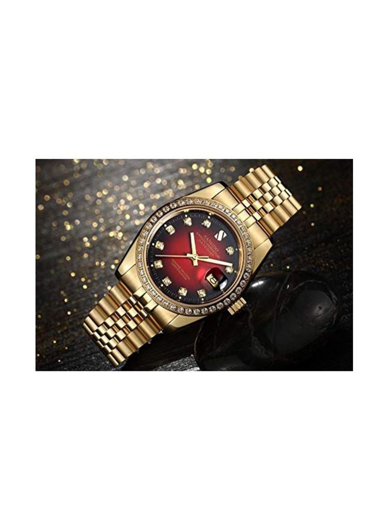 Men's Stone Studded Stainless Steel Automatic Mechanical Watch 5275602