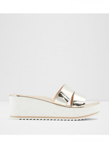 Ocigoveth Metallic Strap Wedge Sandals Gold