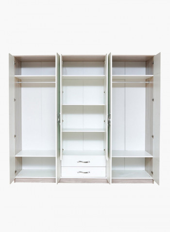6-Door Wardrobe With 2-Drawer And 2-Mirror White