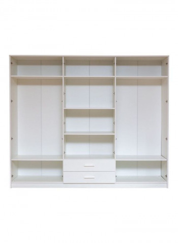 Boston 6-Door Wardrobe With 2-Drawers & Mirror White/Silver