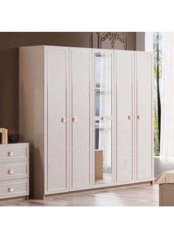 Sienna 5-Door Wardrobe With Mirror Beige/Silver 223x216x59.5cm