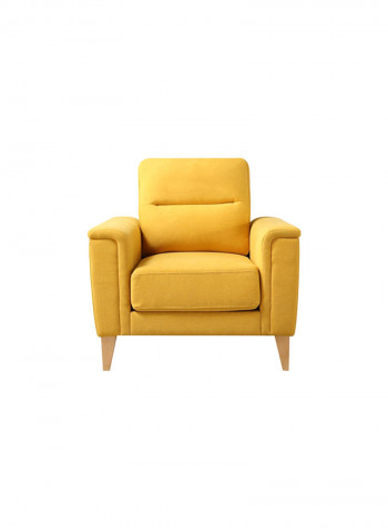 Highlighted in a vibrant tone and flaunting a unique style, this single-seater is perfect for transitional home decors. It has a standard back with tufted upholstery and a square-arm style. Supported by wooden legs at the bottom, the sofa will ensure comfort and durability all along. The Lifestyle image is for representation purpose only.