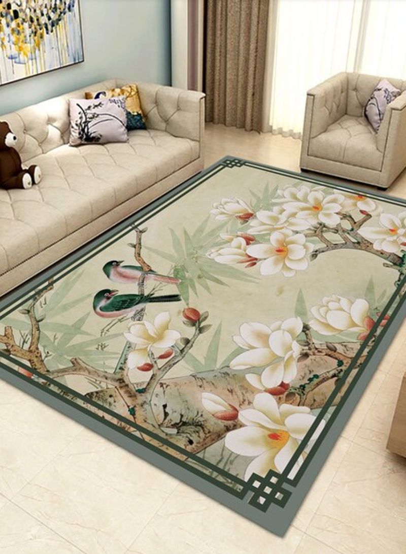 1 Piece Rectangle Simple Northern European Living Room Bedroom Bird Flower Pattern Rug multicolour 140*200(W*L)cmcm