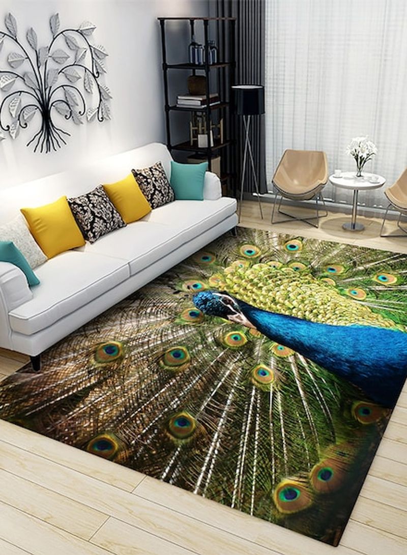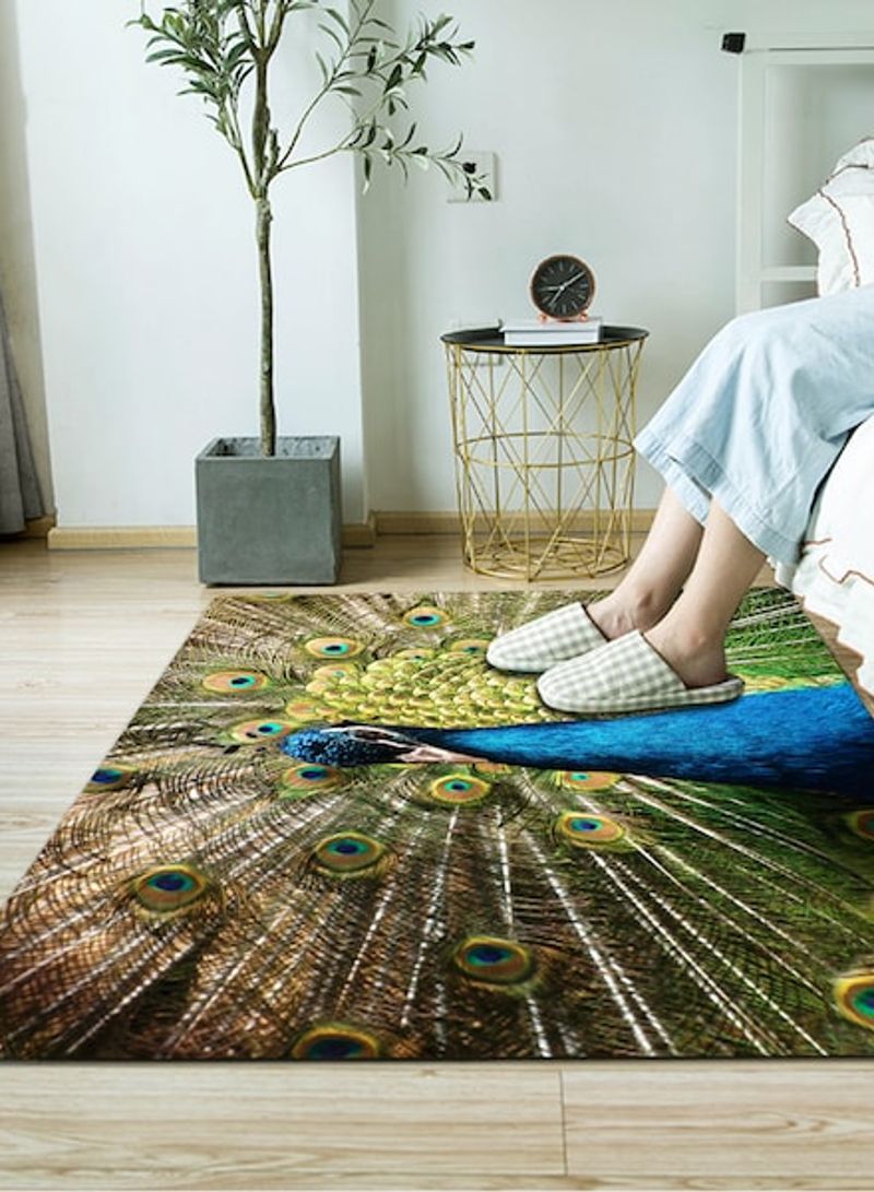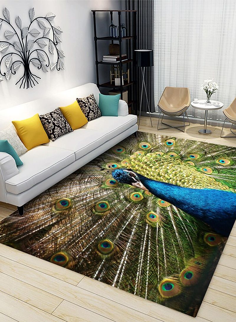 1 Piece Rug Soft Rectangle Peacock Print Living Room Bedside Floor Mat multicolour 120*160(W*L)cmcm