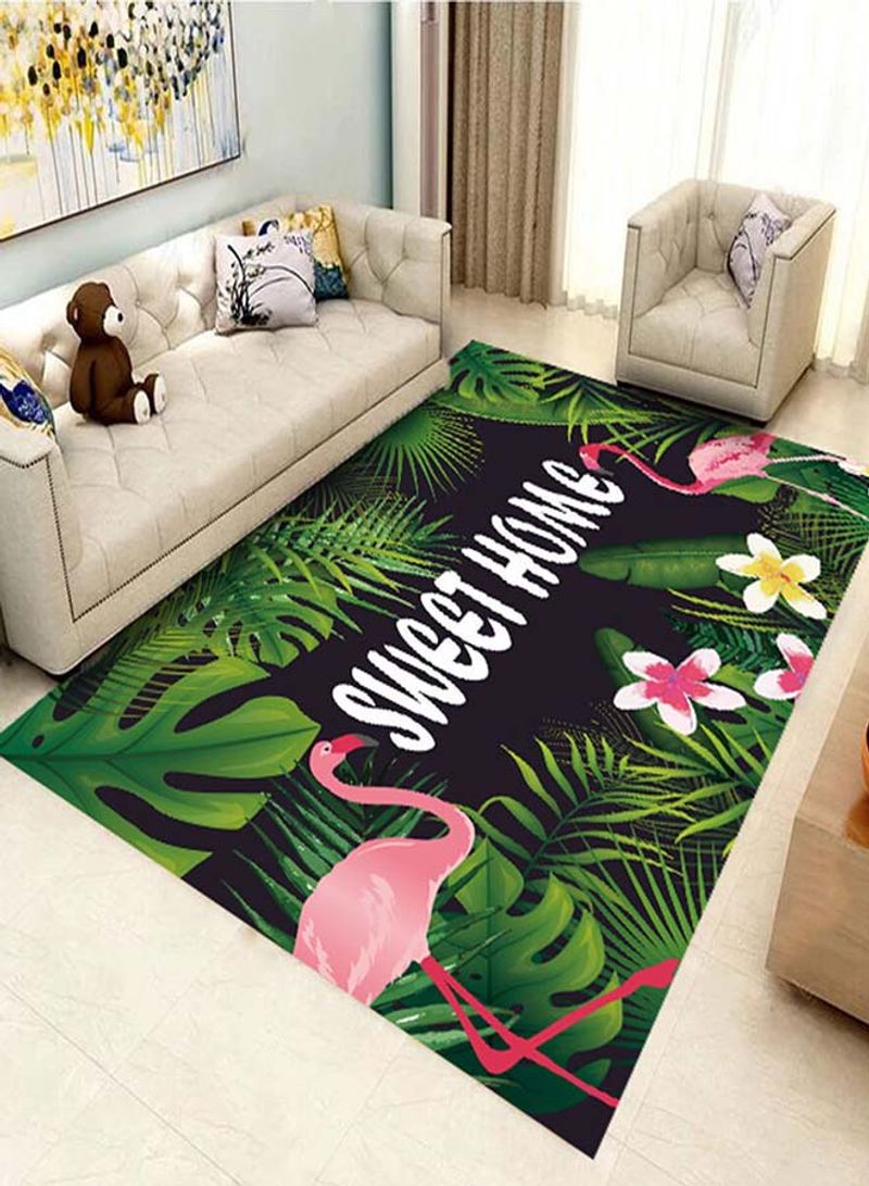 Cartoon Flamingo Plants Pattern Anti-skid Soft Floor Mat Multicolour 140x200cm