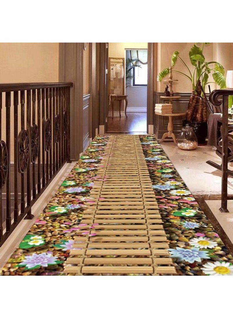 Colour Block Anti-Skidding Floral Pattern Classic Home Rug Multicolour 100 X 200cm