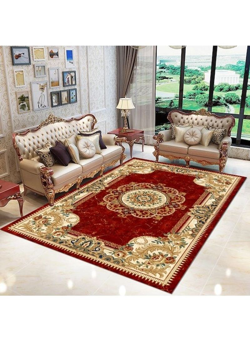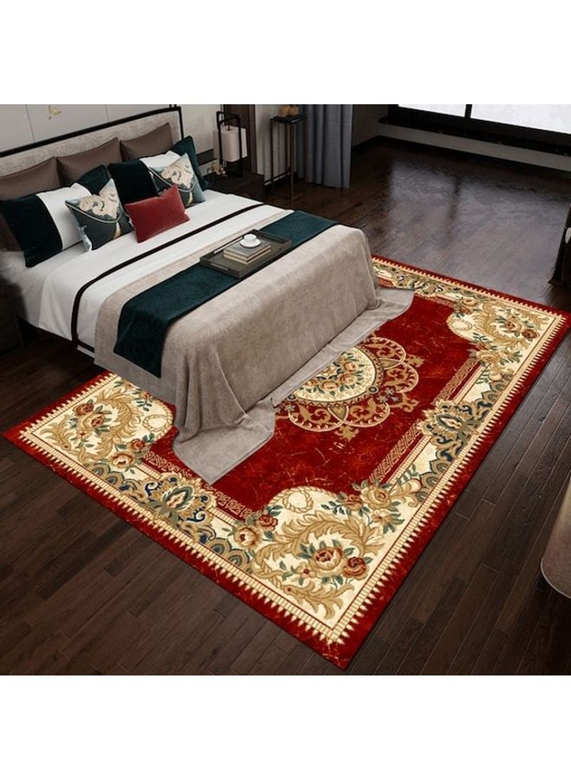 Floral Non-Skid Decorative Rug Red/Yellow 80x180cm