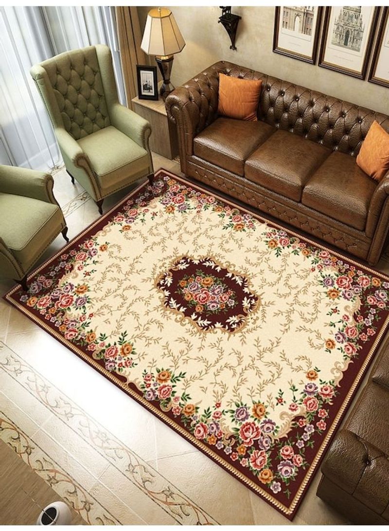 Floral Printed Floor Mat Yellow/Brown/Red 140x200cm