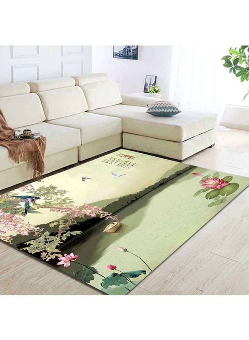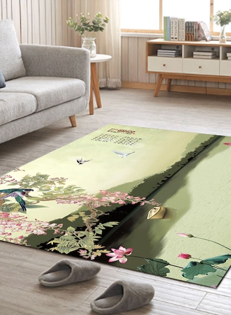 Home Rug Chinese Style Lake Landscape Print Non-Slip Living Room Bedroom Floor Mat Green 80*180 (W*L)cmcm