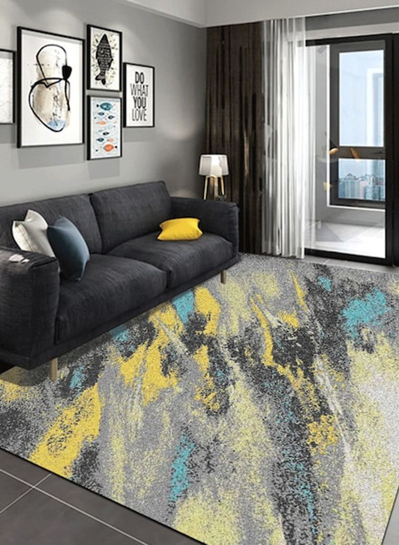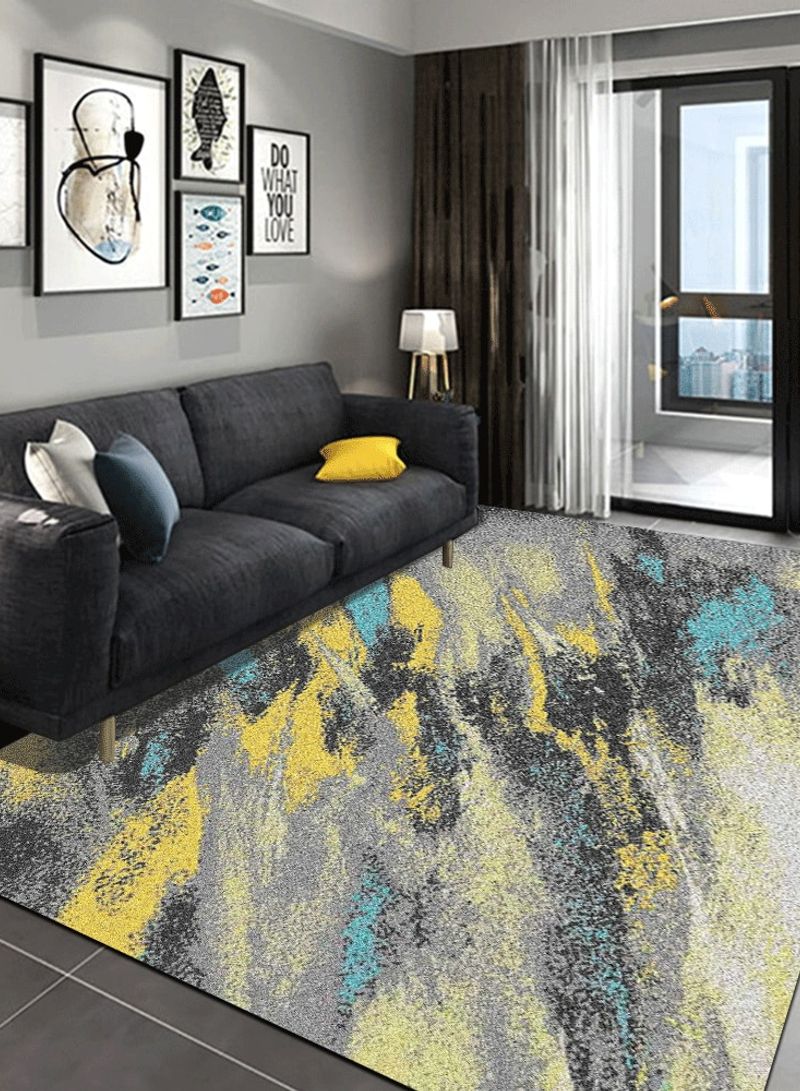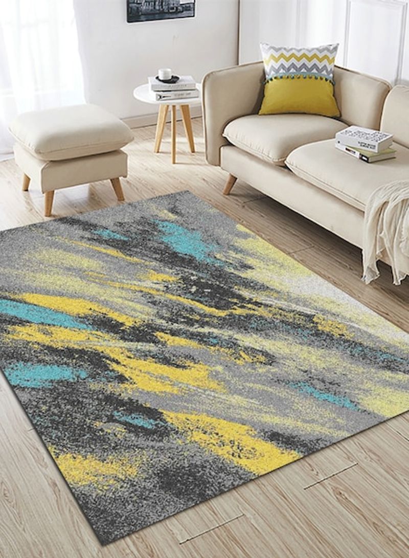 Home Rug Modern Style Abstract Anti-Slip Living Room Bedroom Floor Mat Yellow 80*180 (W*L)cmcm