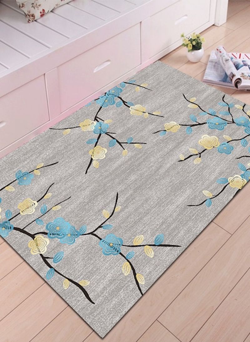 Home Rug Modern Style Flower Print Non-Slip Living Room Bedroom Floor Mat Grey 80*180 (W*L)cmcm