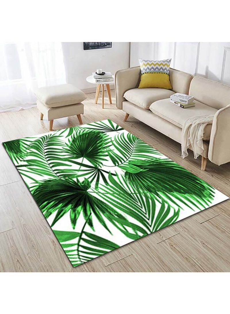 Leaf Printed Anti-Skidding Floor Rug Green/White 120x160cm