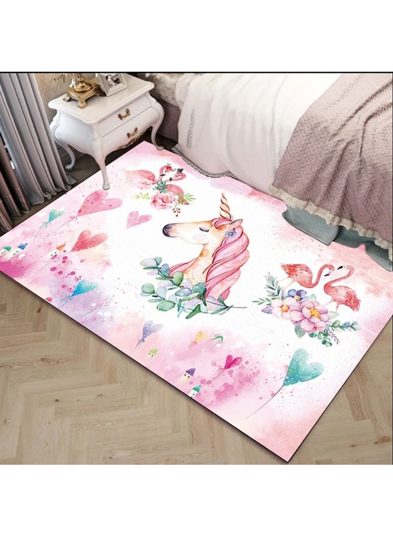 Unicorn Pattern Home Use Non-skid Rug Multicolour 120 x 160cm