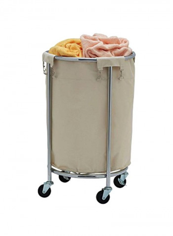 Commercial Round Laundry Hamper Beige/Silver/Black 21x21x32.5inch