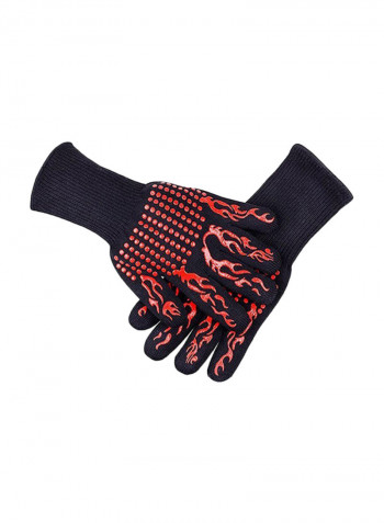 1 Pair Oven Mitts Gloves Red/Black 33x13x1cm