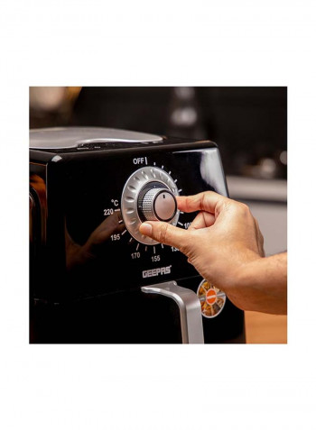 EASY TO USE DIALS - Start cooking your food in just minutes with the easy-to-use operating system. Simply select your temperature (from 80C-220C) and set the timer. Then sit back and relax while your food cooks away with no fear of spilling or causing a mess anywhere.REMOVABLE PARTS FOR EASY CLEANING - After use, both the tray and the cooking basket can be removed for easy cleaning. These can be hand washed in warm soapy water or, if you want to give them a deeper clean, due to its non-stick surface it avoids food to stick on it making it easy for cleaning.STYLISH COMPACT DESIGN - The Geepas Air Fryer has been designed to be both compact and practical but also timeless. A brushed chrome lid and handle with a black gloss outer finish create a modern and luxurious design that looks great in any kitchen. Comfortable handles give a cool touch while removing the hot delicious food.8 LITRE CAPACITY - Cook enough for the whole family with the generously sized cooking tray and mesh frying basket. Made with a high-quality non-stick coating, the mesh basket is essential in helping the hot air circulate around the food inside and also allows any juices to drain away. The cooking tray neatly collects any fats and juices from the food which can then be disposed of after cooking has finished.DETACHABLE BASKET - A removable inner basket means it's easy to separate and clean the part that gets up close and personal with your food. You can also bring it to where you're preparing food for extra convenience.