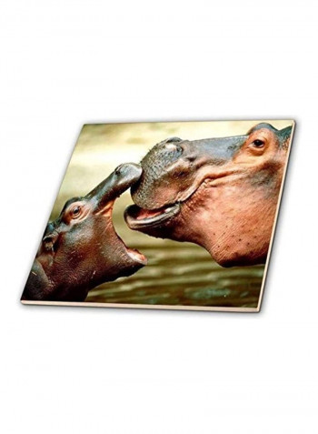 Mama Hippo and Her Baby Ceramic Tile Multicolour 12 x 12inch