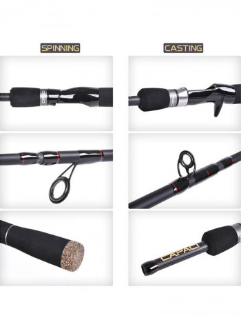 Description: Product name: fishing rod Packaging: Cloth bag packaging Category: fishing rod Material: Carbon Parameter information: see picture Specifications: SPINNING 2.1M, SPINNING 2.4M, CASTING 2.1M, CASTING 2.4M Applicable Scene: Other fishing rods Product list: fishing rod * 6,storage bag*1 Notice: Due to manual measurement, it may vary from 1 cm to 3 cm. The colors deviation might differ due to different monitor settings, please kindly understand.