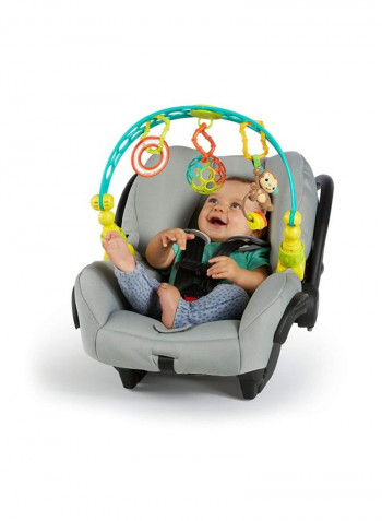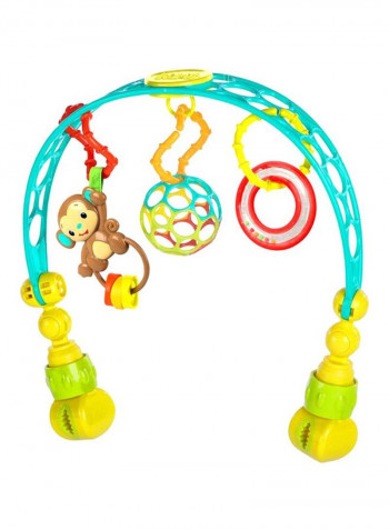 Safe for ages 0 months and upthis toy bar is made of soft, flexible Oball materialincludes 3 removable toys: an original easy-to-grasp 3in Oball, lion rattle, and elephant with rattleit also comes with 4 linky loops to attach additional toysattach to your stroller for on-the-go fun