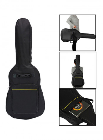 Comes with gig bag, capo, tuner, cleaning cloth, extra strings, guitar strap, pickguard, picks(random color delivery)