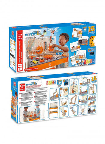 Hape's 79 Piece Deluxe Scientific Workbench contains everything children as young as four need to conduct over 15 experiments and demonstrate key scientific principles. Learn more about science with this cool inventorsâ workbench. Your little one can build devices like a Digger, Zoetrope, Gravity Vehicle, Rotating Light, Wind Maker and many more. Encourage your budding scientist to interact with the physical work and learn about basic scientific principles. Discover momentum, gravity, persistence, and the conservation of energy to mention a few. Let the creative experiments stimulate your kid's curiosity and get to know the secrets of physics. All components and tools are designed for child's hands and for all skill levels. Round edges are safe for little fingers. Develop STEAM Principles The Hape Scientific Workbench is the perfect platform for STEAM (Science, Technology, Engineering, Art and Mathematics) education.